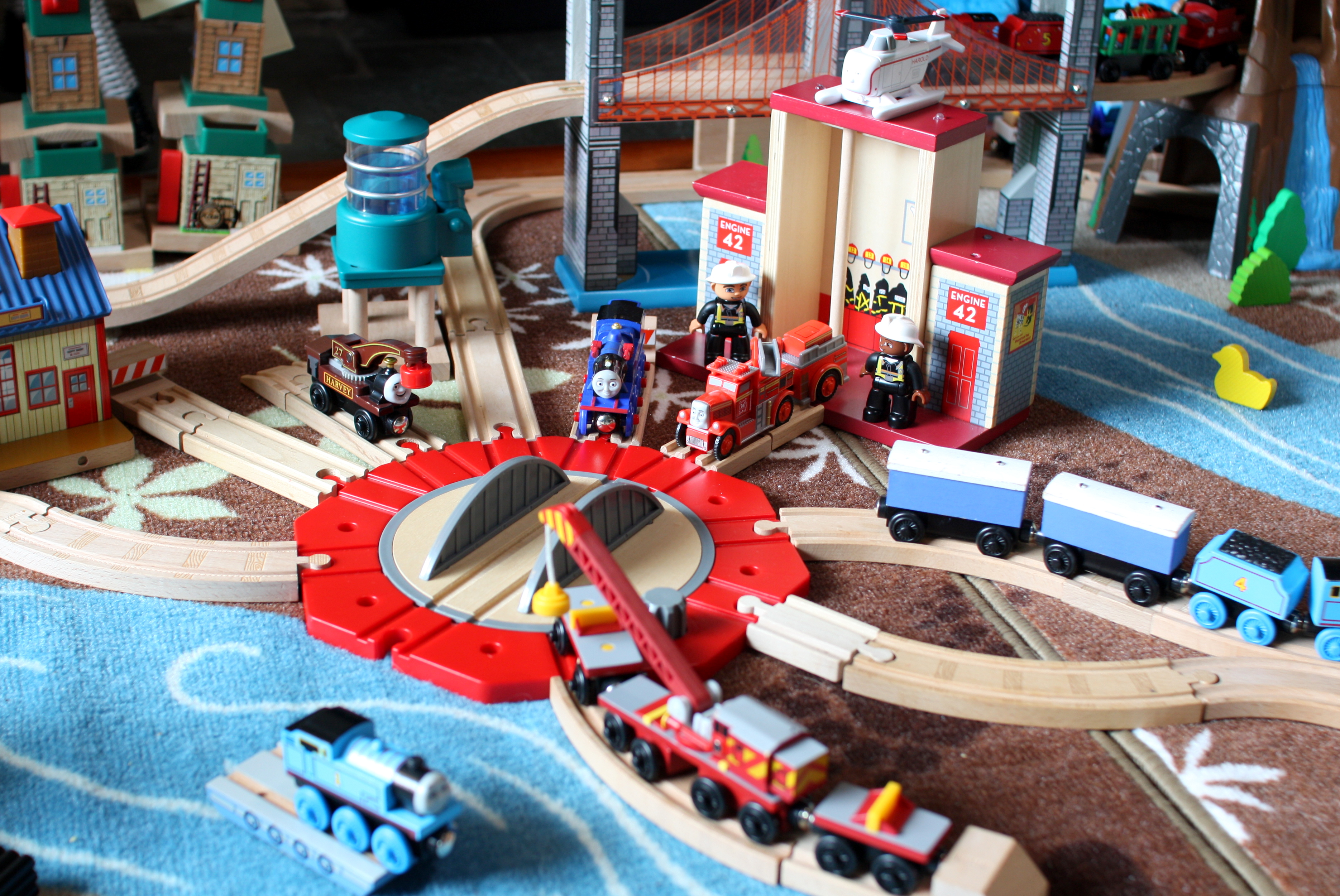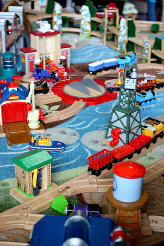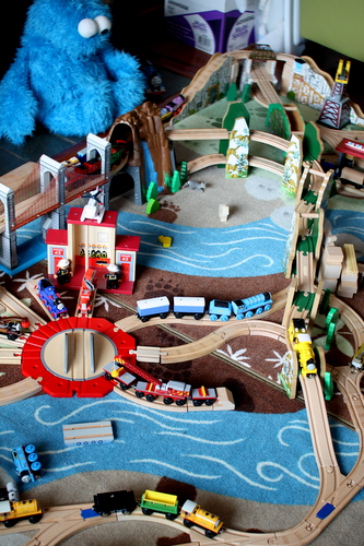 Filed Under: Cool Train Stuff, Wooden Train Play Tagged With: train rooms, train set scenery, wooden track layouts, wooden trains